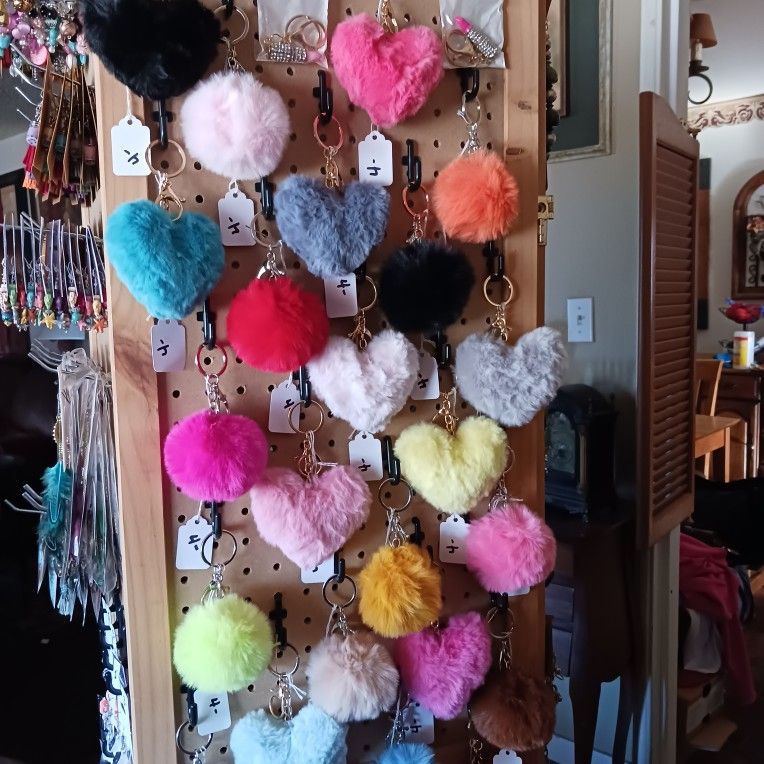 BRAND NEW Plush Pom Pom & Heart Keychains. $4 each NUEVOS llaveros de peluche con pompones y corazones. $4 cada uno