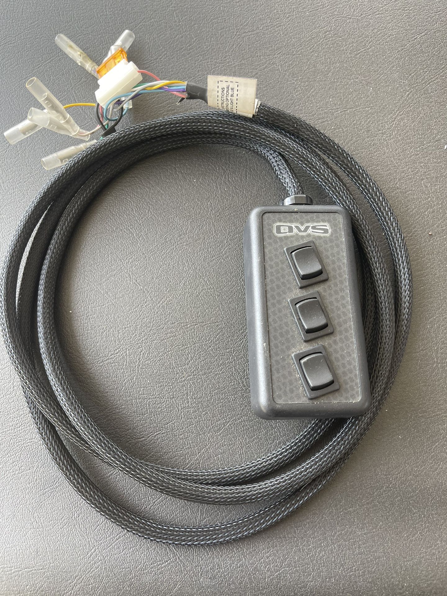 Dimensions 5" x 2" x 1" Female Bullet Connectors are pre-assembled on switch box for easy installation. Cord Length Approximately 7-ft +12-V inputs for your Remote Up (Light Blue) and Dump (Gray) options.* 5-amp in-line fuse Controller is in great condition truck went from one shop to another no use on the controller.