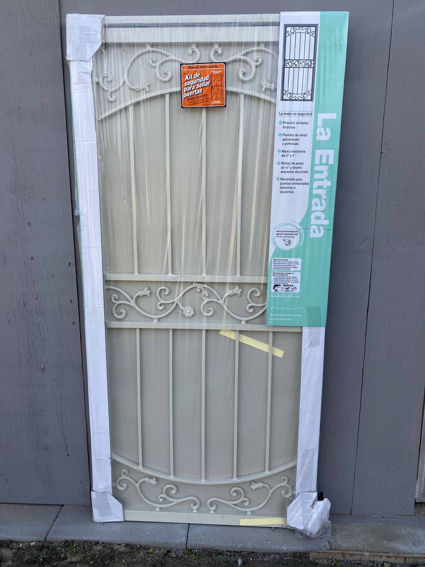 Brand new steel security door from Home Depot. Measures at 36 in x 80 in. MSRP $374+ tax. Selling for $250 Located in San Bernardino. Hablo español.