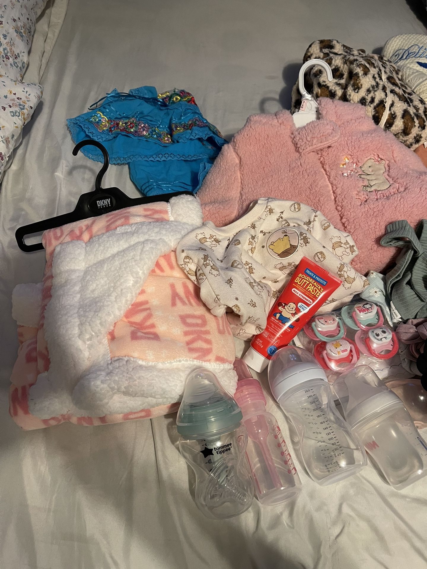 Some items are brand new. Mostly clothes but also have bottles, pacifiers, blankets and bows. Great condition!