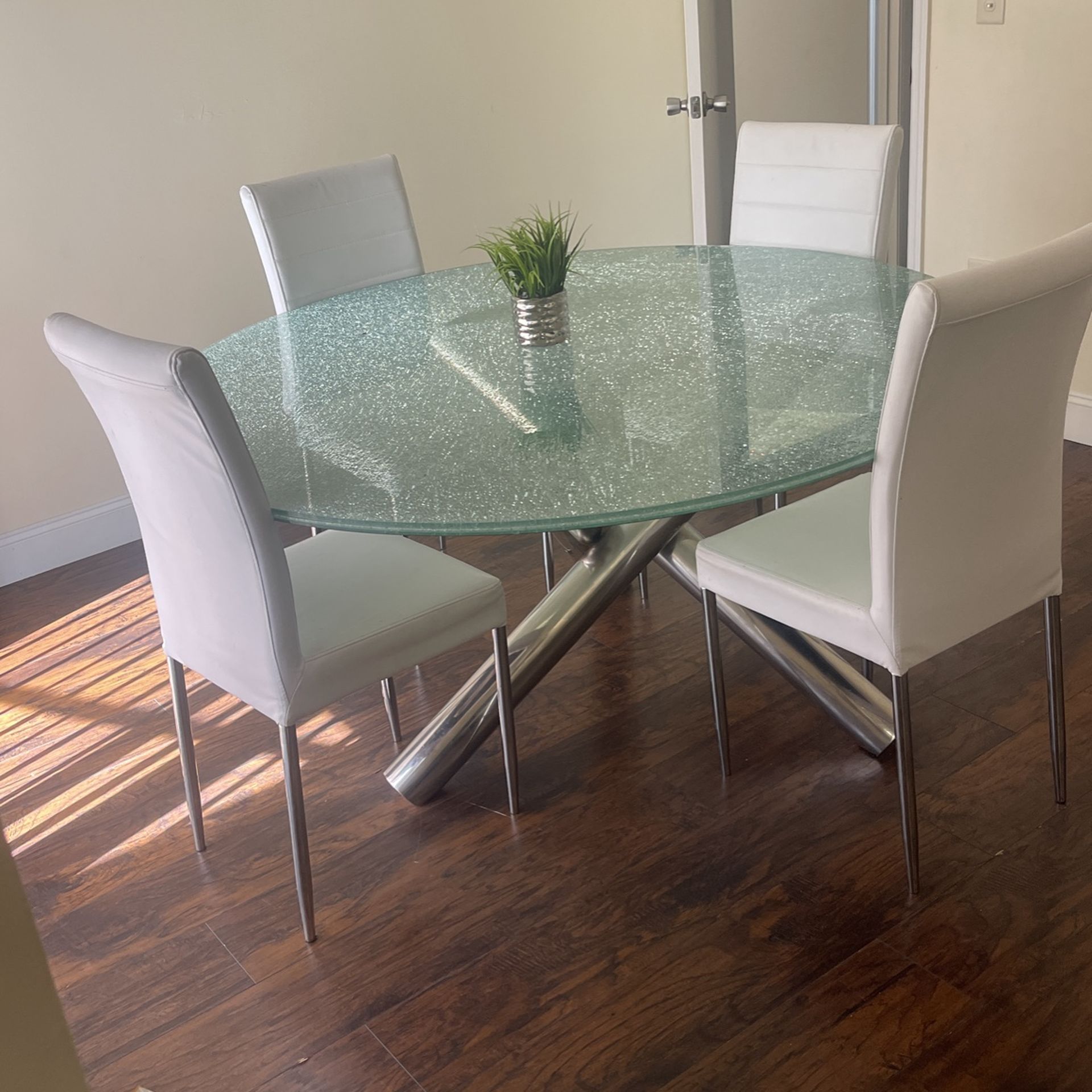 Heavy Luxury Silver Chrome Based Table W/ 4 Chairs