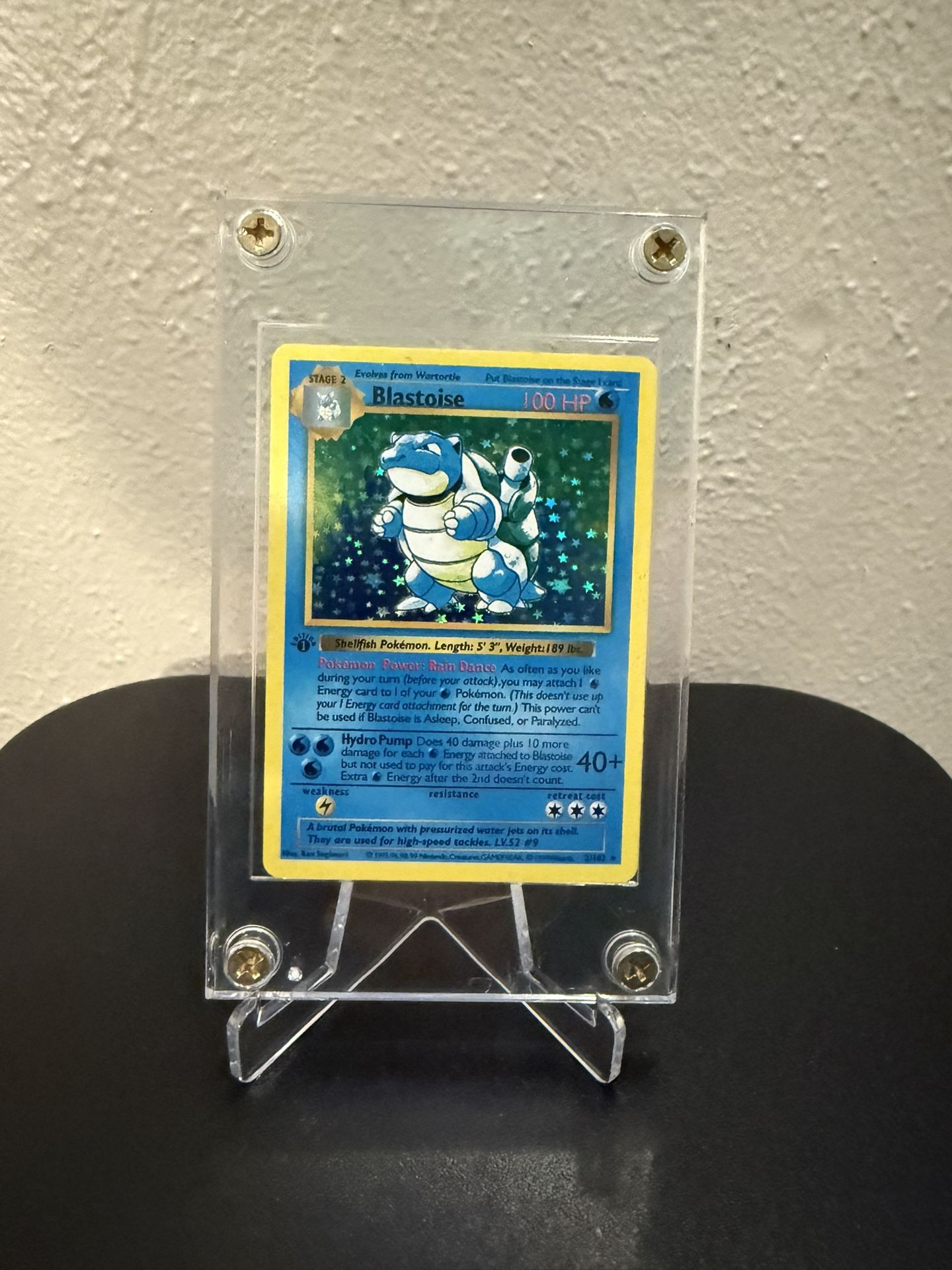 Replica Holographic Blastoise Pokémon Card in Acrylic Display Case