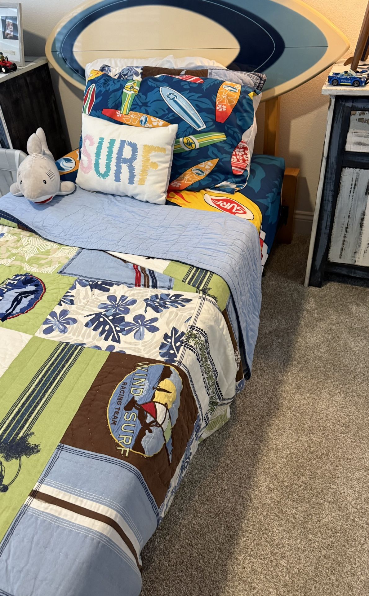 Never really was slept in. Frame base and mattress is what’s sold together. Twin size