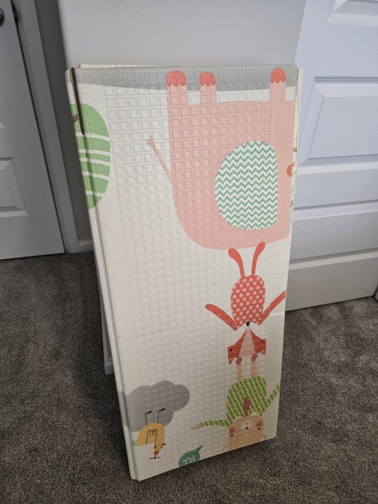A well loved play mat. I've included pictures to show you condition of the paint and crayon that's still on it. We've cleaned it as well as we could. But btkd one is reversible and the other side is close to new. Our daughter has just outgrown it Play Mat, 0.6inch Thick Extra Large Folding Playmat, Portable Waterproof Reversible Double-Sided Crawling Mat https://offerup.com/redirect/?o=aHR0cHM6Ly9hLmNvL2QvMXYxQXJSWQ==
