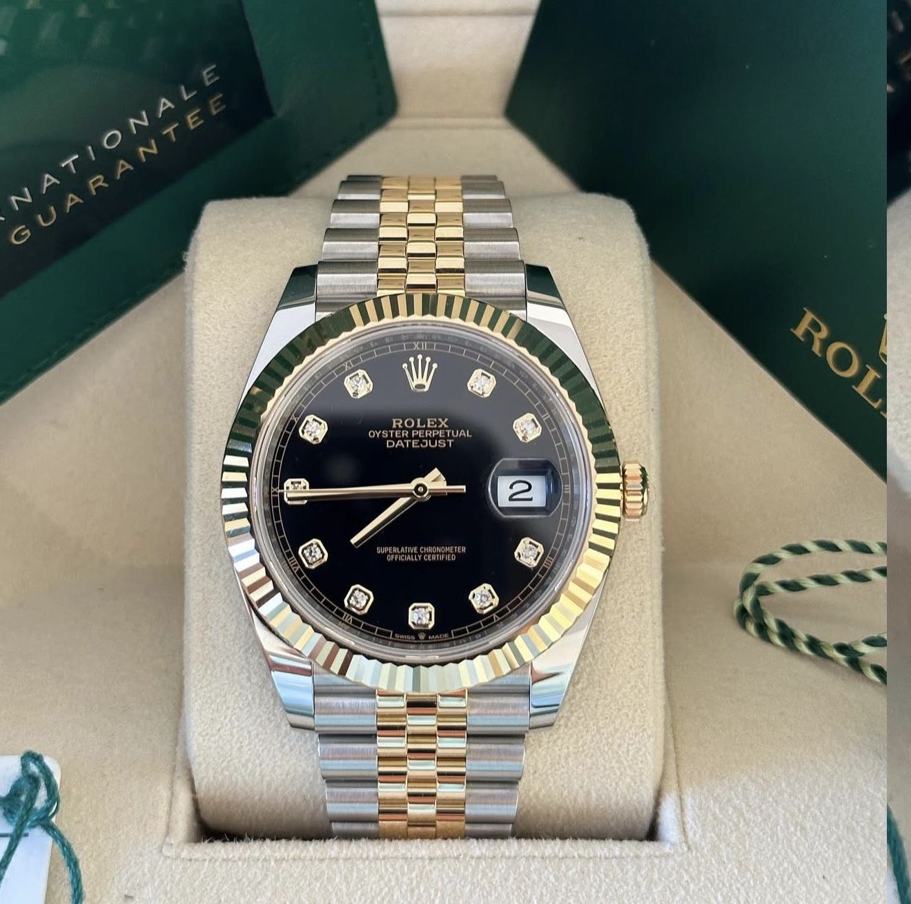 Rolex Datejust 41mm Factory Black Diamond Dial 126333 jubilee two tone 18k yellow gold. Comes Full Set - new style card, box, white & green tag, booklet, warranty, etc.