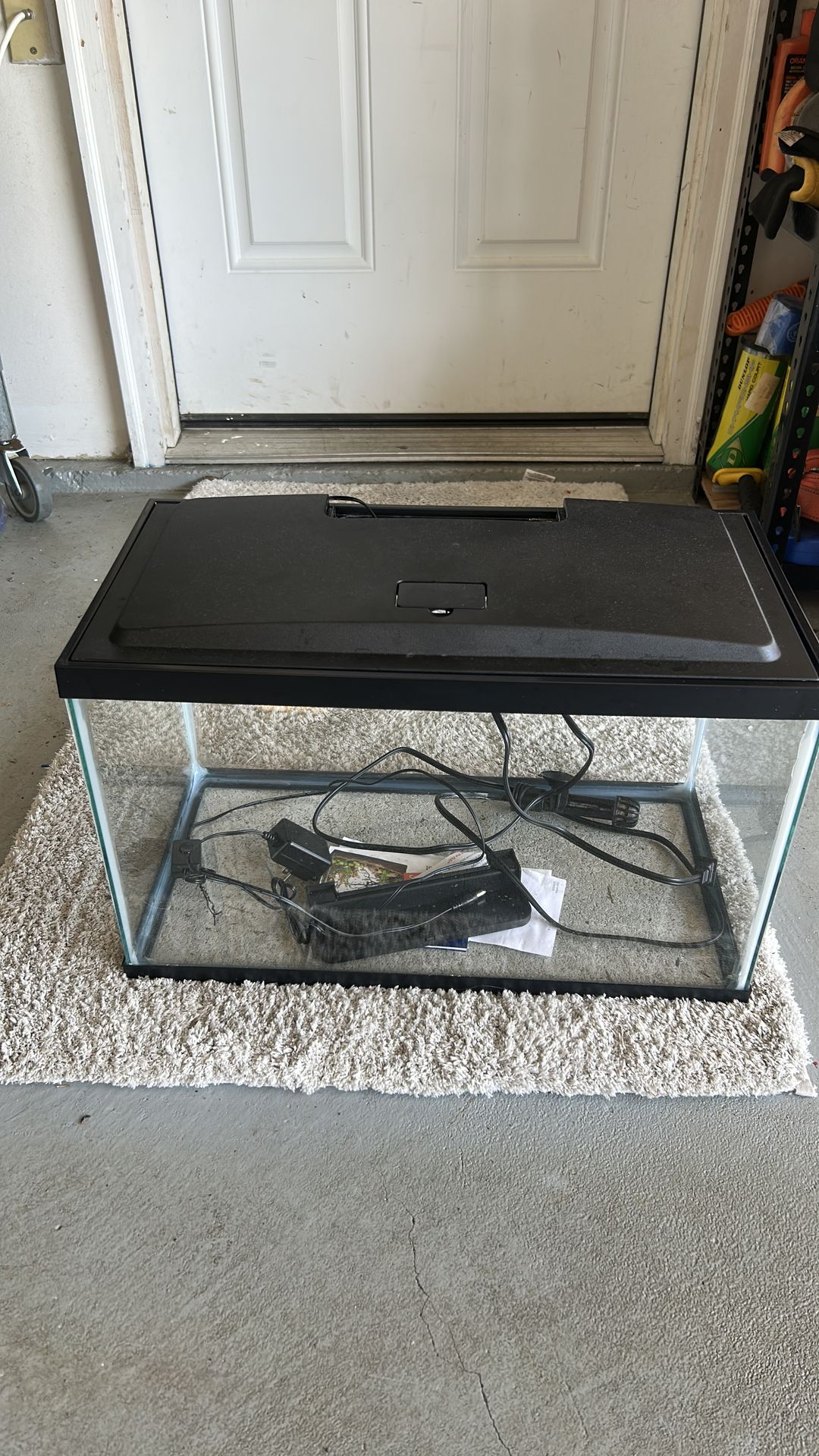 One year old 10 gallon fish tank with heater, filter and lighted lid. All you’ll need is some rock and your favorite fish. And of course, water. $40