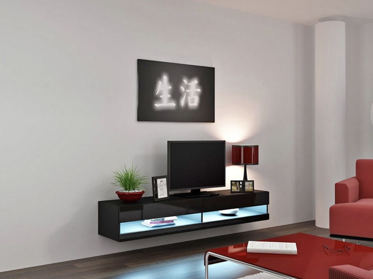 High Gloss 71” Floating Tv Stand With Led Lights- Black And White Available.