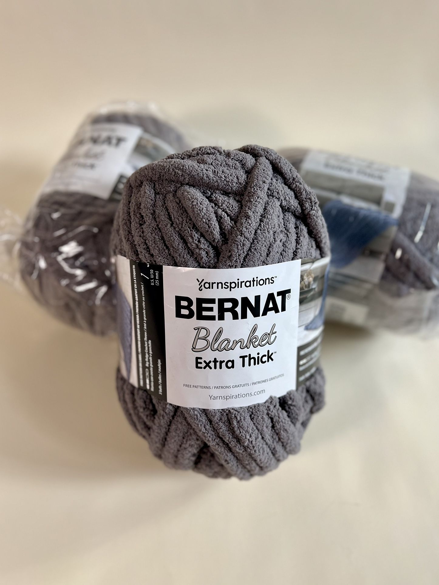 3 skeins of Yarnspirations BERNAT Blanket Extra Thick POLYESTER Yarn in DARK GRAY. Each skein 600 g (72 yards) Jumbo size 7 See photos for more details MORE COLORS AVAILABLE, SEE PROFILE LISTINGS.