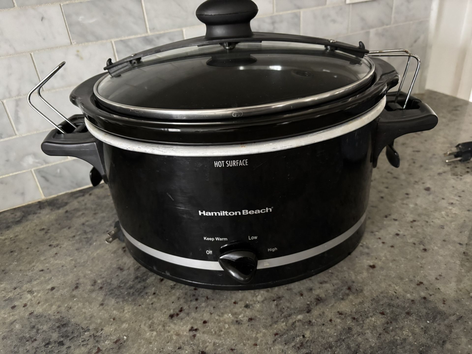 The Hamilton Beach 4 qt. Black Metal Slow Cooker is a compact appliance that is ideal for small families or couples. It has three basic cooking settings: low, high, and warm. The slow cooker has a clip-tight sealed lid that locks onto the slow cooker to help prevent messy spills. It is dishwasher safe and has full-grip handles for easy carrying. Cross posted No holds Smoke free home Cash only