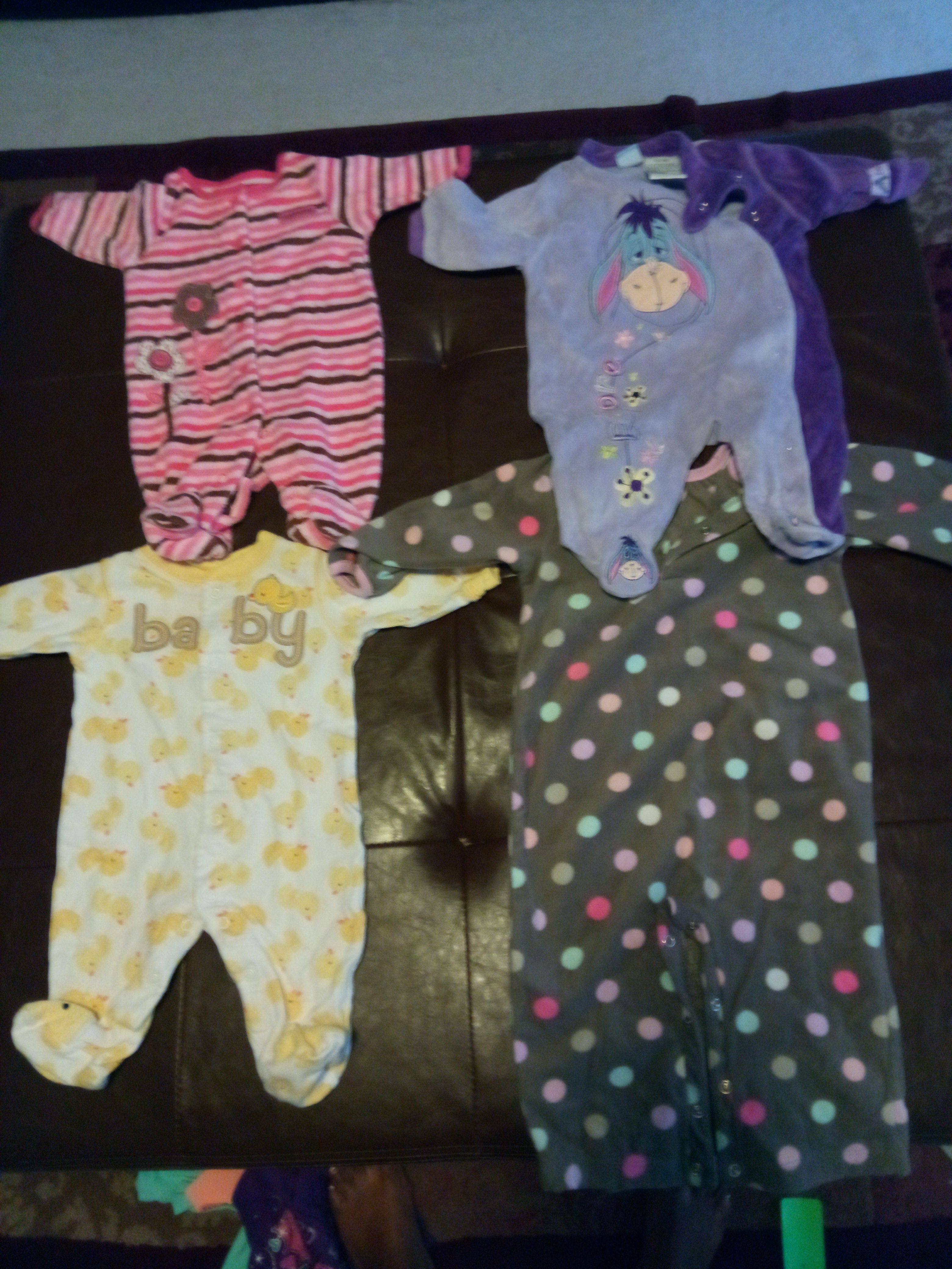 Jackets and onesies. Sizes range from 3 months-12 months. Most items are $3 each