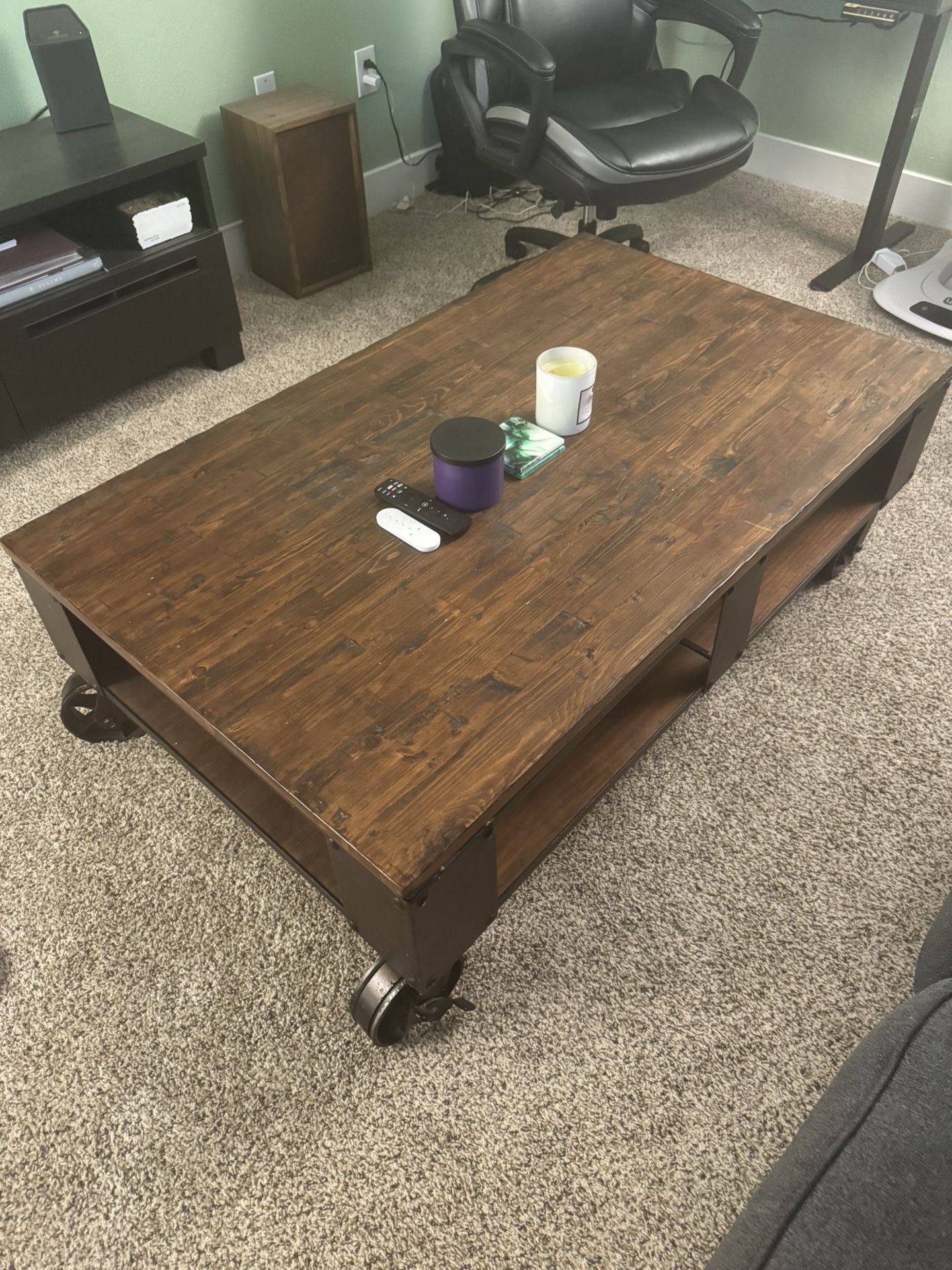 Iron And Wood Coffee Table With Casters