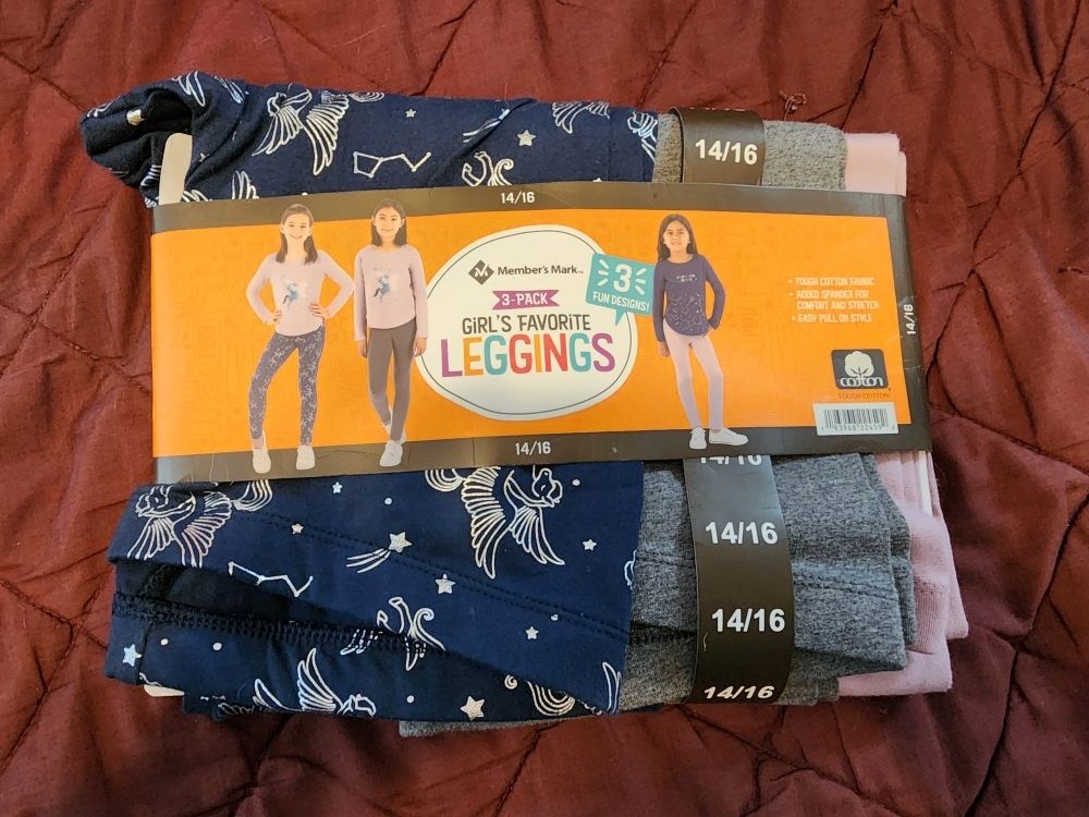 Brand new three packs of girls 14/16 leggings. Pick up in Spring Grove.