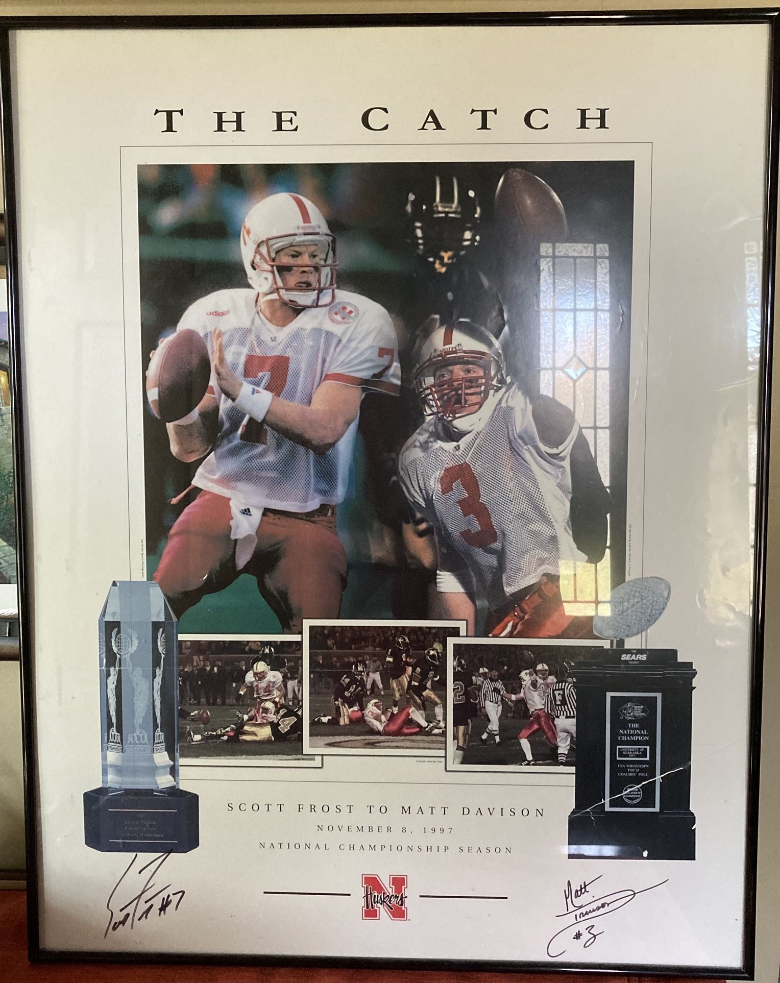 Huskers Signed The Catch Poster by Scott Frost and Matt Davison Framed