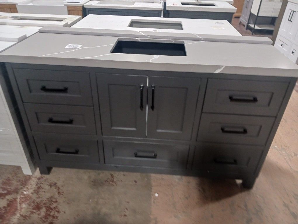 60" Solid Wood Bathroom Vanity in Charcoal with Quartz Top & Sink for $1350