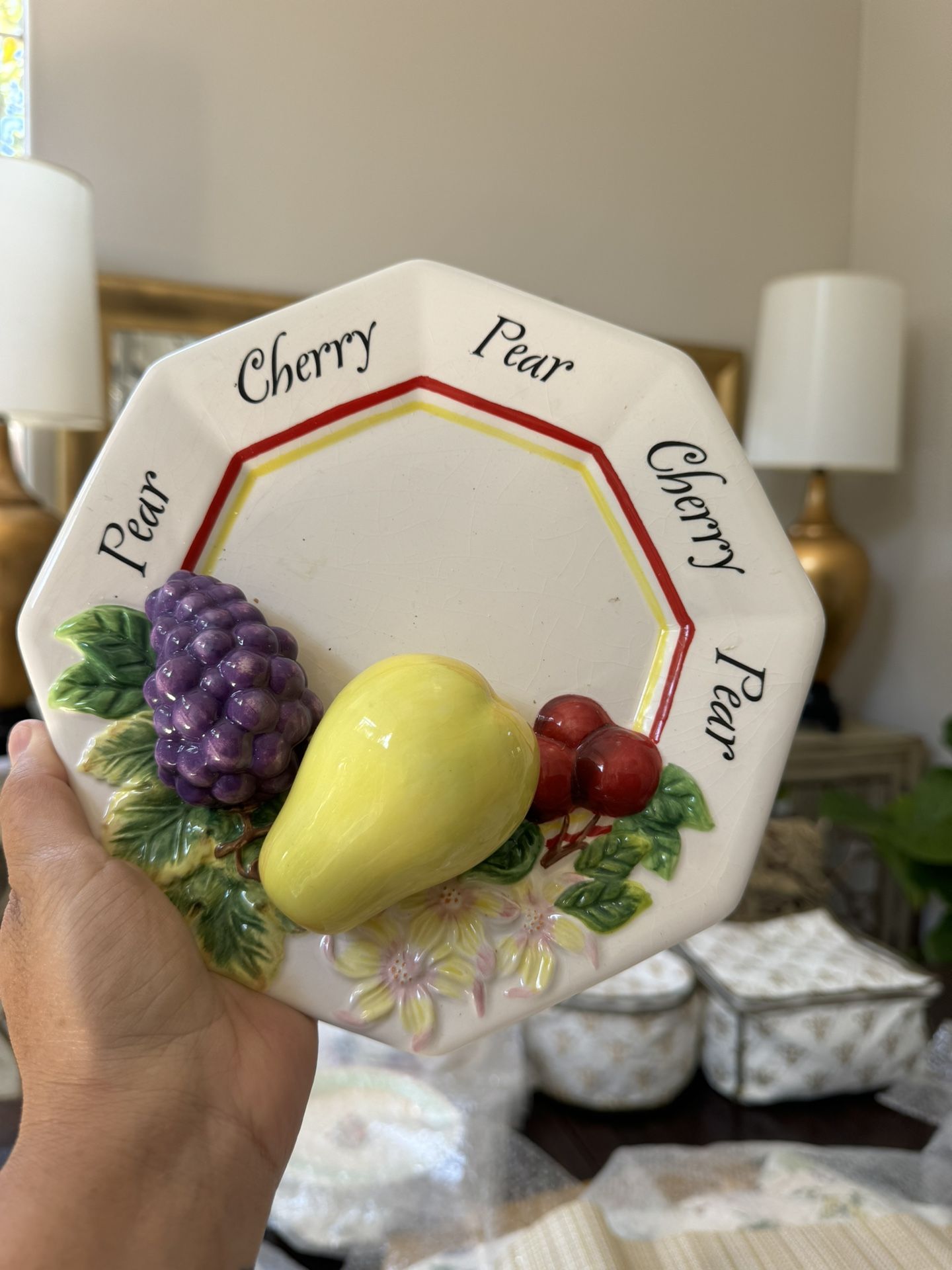 Wall decor plate Pear Cherry Grape Plum Flowers 8.5” diameter
