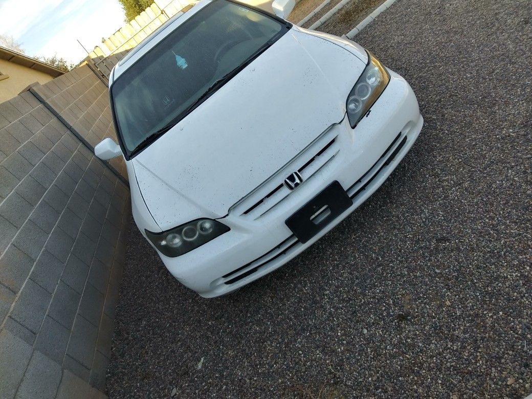 2002 honda accord v6 3.0 vetch Timing chain fell off head might be bad Rear trunk and quarter panel damage 75k miles on the transmission rebuilt New fans new radiator and hoses New alternator sway bar links both side are new tires new rotors good condition Shocks good condition brand new AC air compressor New harmonic balancer or crankshaft pulley same thing brand new oil pan not installed Spark plug coils brand new all of them along with spark plugs other than that the whole car in good condition CAR DOESN'T RUN