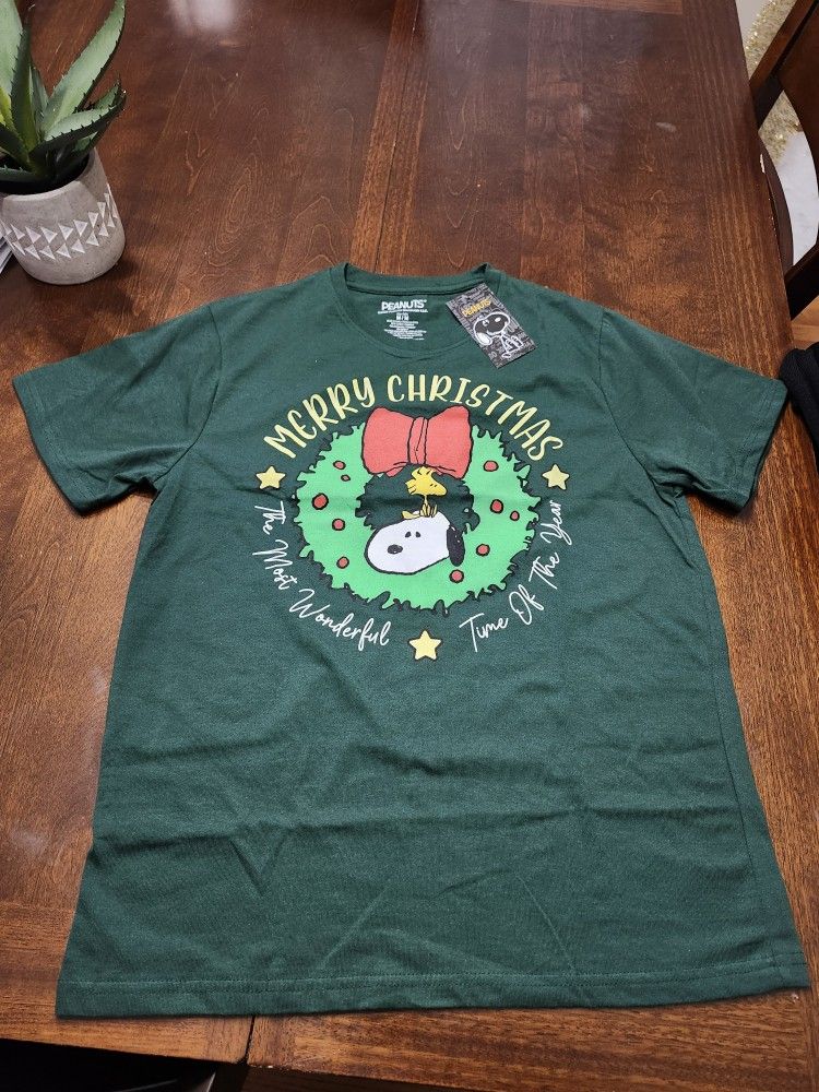 New Peanuts Merry Christmas Tshirt Dark Green SIZE Medium.