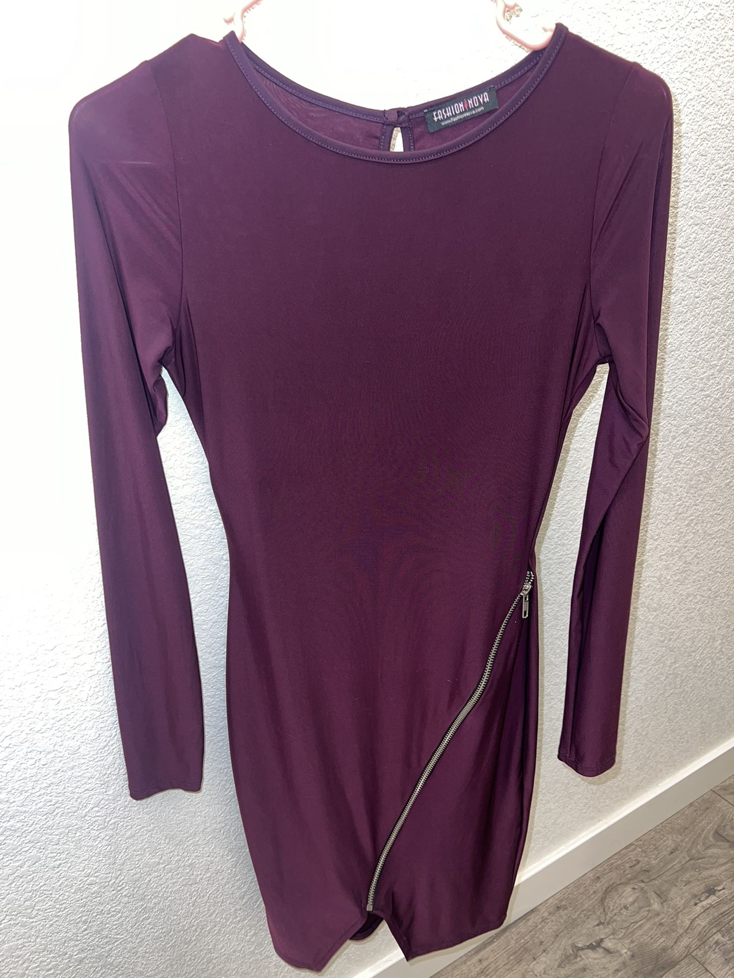 Fashion nova purple dress, size small, perfect for cold weather, has long sleeves