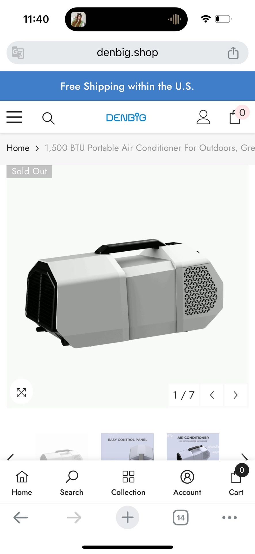 1500 BTU (DOE) Portable Tent Air Conditioner Cools 50 sq. ft. for Camping, RV, Outdoor Event W/ 3-Wind Speeds in Silver