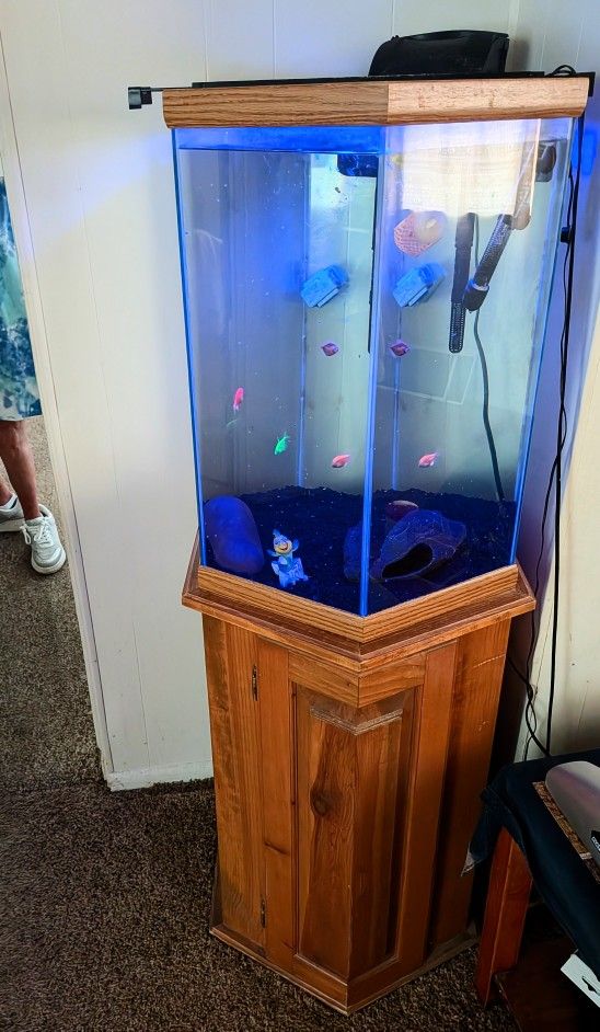 Huge Hexagon Fish Tank And Wooden Storage Stand