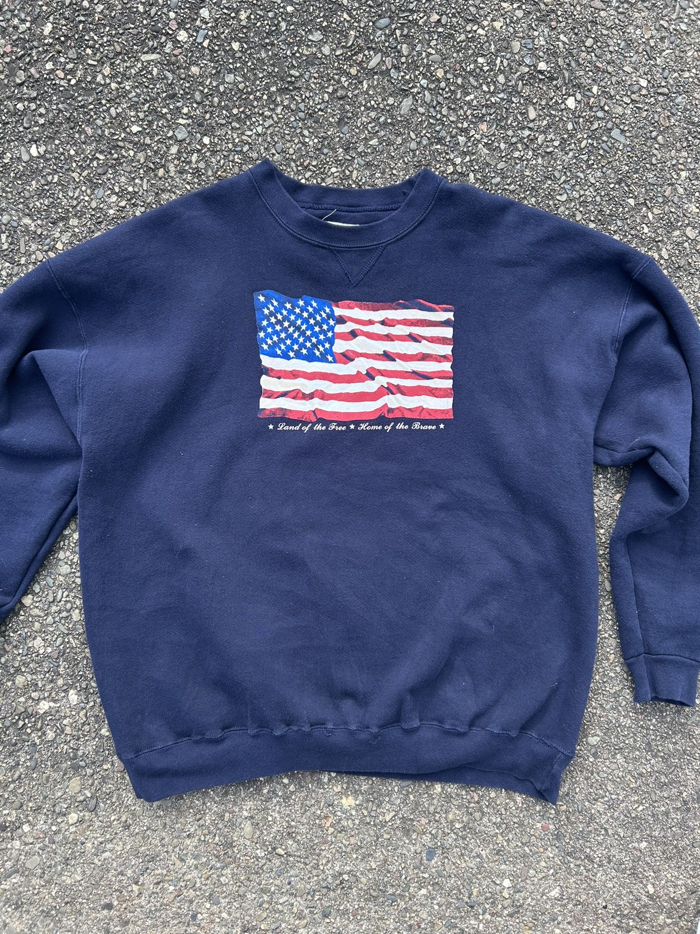 Only front graphic Don’t be afraid to send offers/request/questions navy, american flag, crewneck, vintage, graphic print, soul style, casual, military-inspired, 90s aesthetic, patriotic