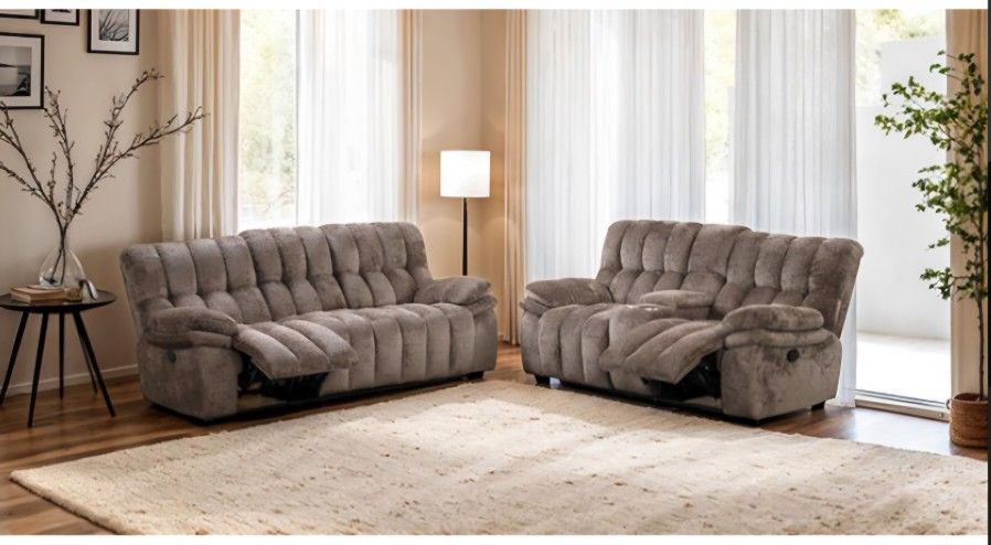 Sofa and Loveseat Manual Recliners Dark Brown Fabric, Solid wood, Metal, others. Webbing back frame construction, Rounded Wide track pillow Top arms, Console w power outlet, USB-A and USB-C Charging ports and 2 cupholders in Loveseat, Pocket coil and High Foam density. Sofa 92"x41"x40"h. Loveseat 81"x41"x40"h. New in box ! Check out my list and find the furniture of your dreams 🤗💰👍🤑 All the products are New in box, ready to deliver the next Day! We offer delivery and assembly service for an extra cost, ask for the amount ! Financing available Snap and Acima ! Snap send 82685 to 48078 to apply now! Acima send 90129 to 22462 to apply now! Visit us at : 1212 S Bristol St Santa Ana Ca 92704 Unit 7 1204 S Bristol st Santa ana CA 92704 B16 10am to 7:00pm Hablamos Español !