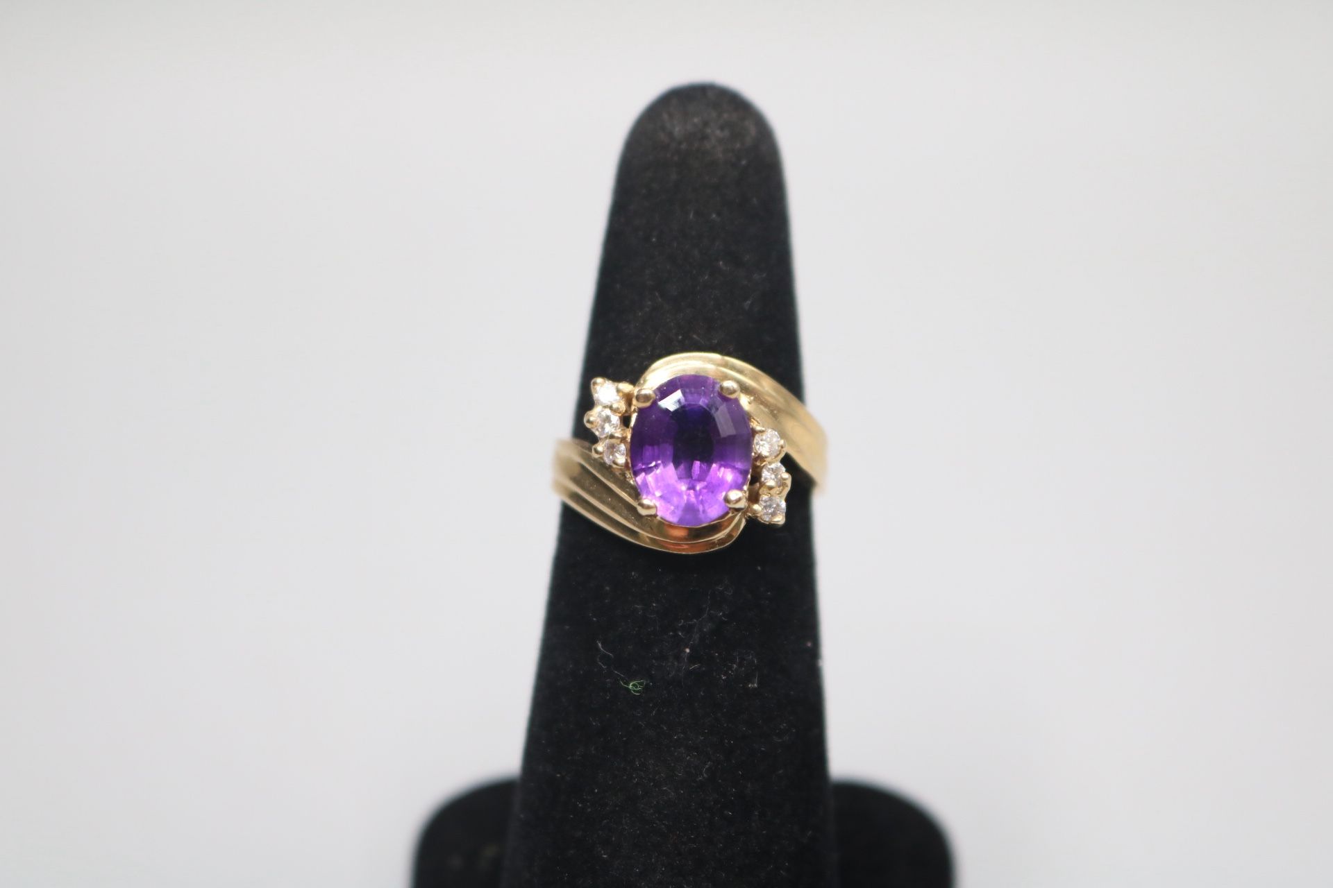 14K Yellow Gold Diamond Bypass Amethyst Ring Size 6 | Pre-Owned