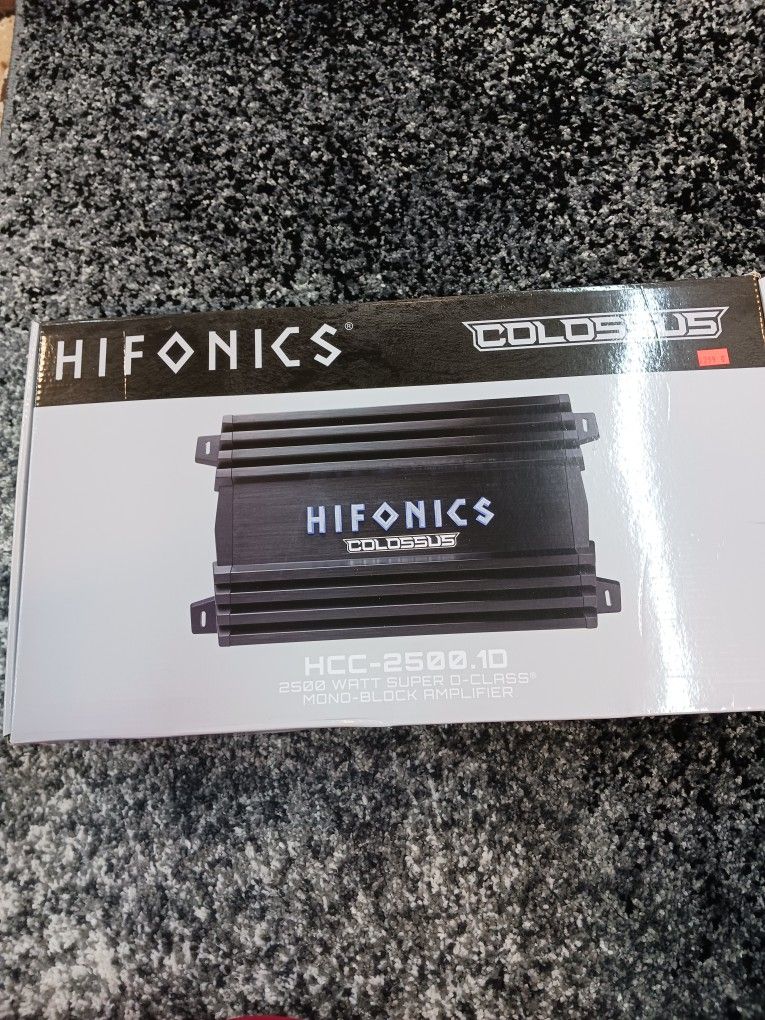 Hifonics 2500 watts at 1 ohm stable, class D mono block amp comes with the base knob, avaliable at Universal Sound at Independence Mall.