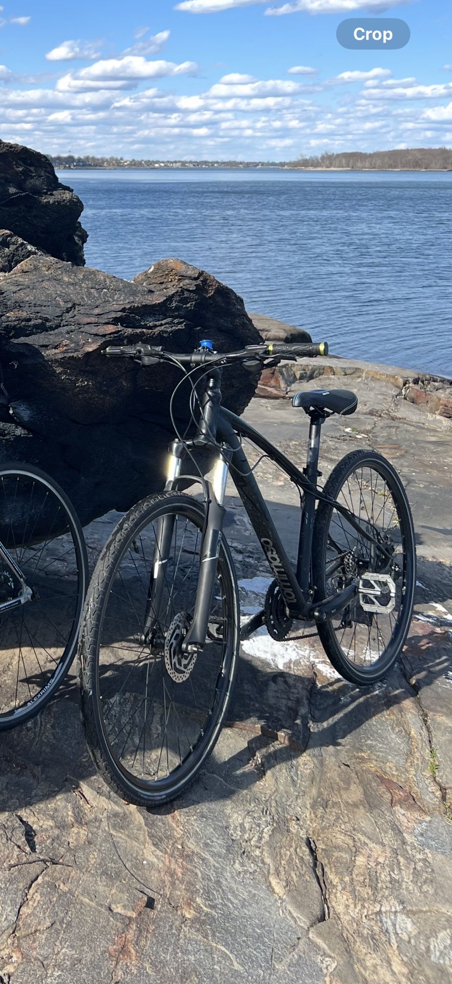 Used. Needs some work and cleaning done on brakes. Disc brakes on both wheels. Great bike. Shimano brakes.