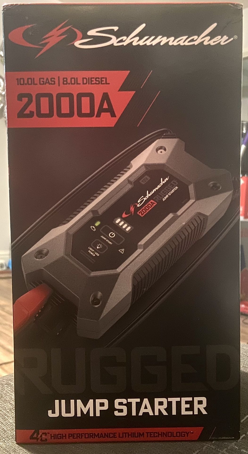 Brandnew still in box 2,000A Batter Jumper , Can jump 40+ Cars on a Single Charge , Jumps v4 , v6 , v8 also diesel & Rv . Great for road assistance or just to have in a breakdown situation. It also has a USB port so you can plug in any type of electronic/phone If needed also an L.E.D flashlight for night time . Comes with the cigarette charger & wall charger . No more asking for jumps or worrying about a dead batter with this device! 150$
