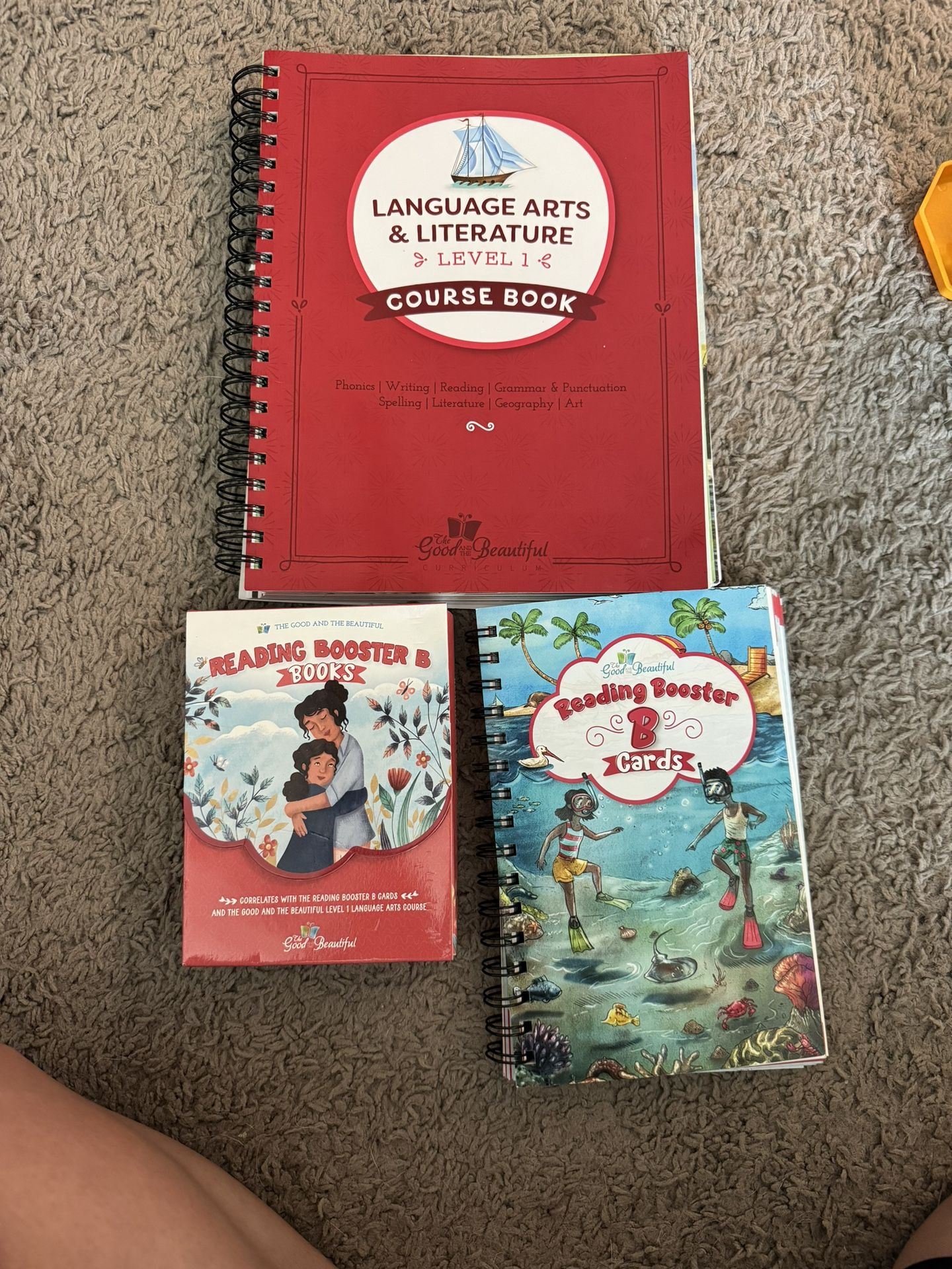 Level 1 language arts and literature course book starting on level 8 ending on 118. Reading booster cards and well as booster books