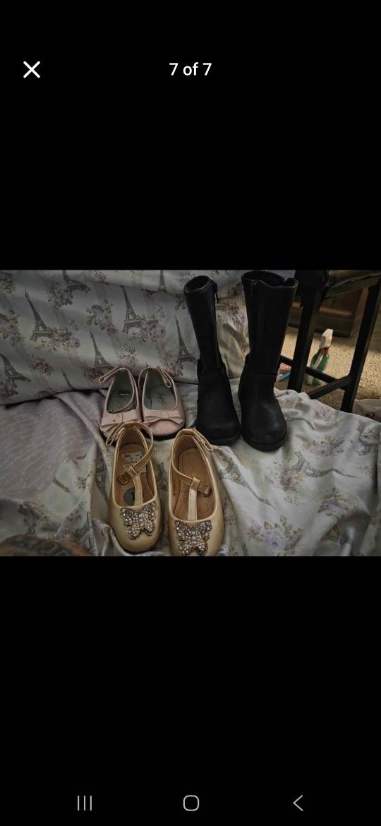 Boots size 8 $10 Golden flats size 7 $5 Pink flats size 7 $5 All new