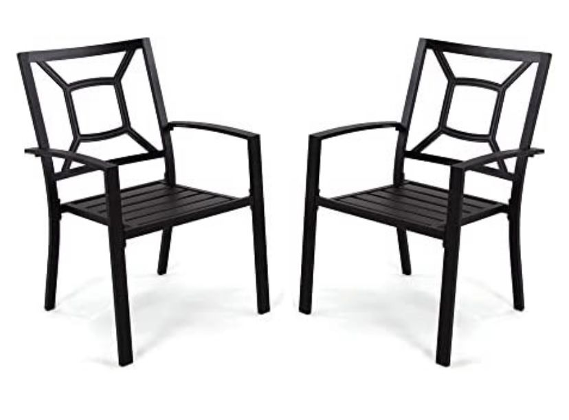 * item in box needs to be assembled* Material: metal steel with E-coating Color: black Chair Size: 25"L x 22.5"W x 35"H, Seat height: 17" Weight capacity: 300LBS Style: stackable Assembly required Please check out my other items. Thank you