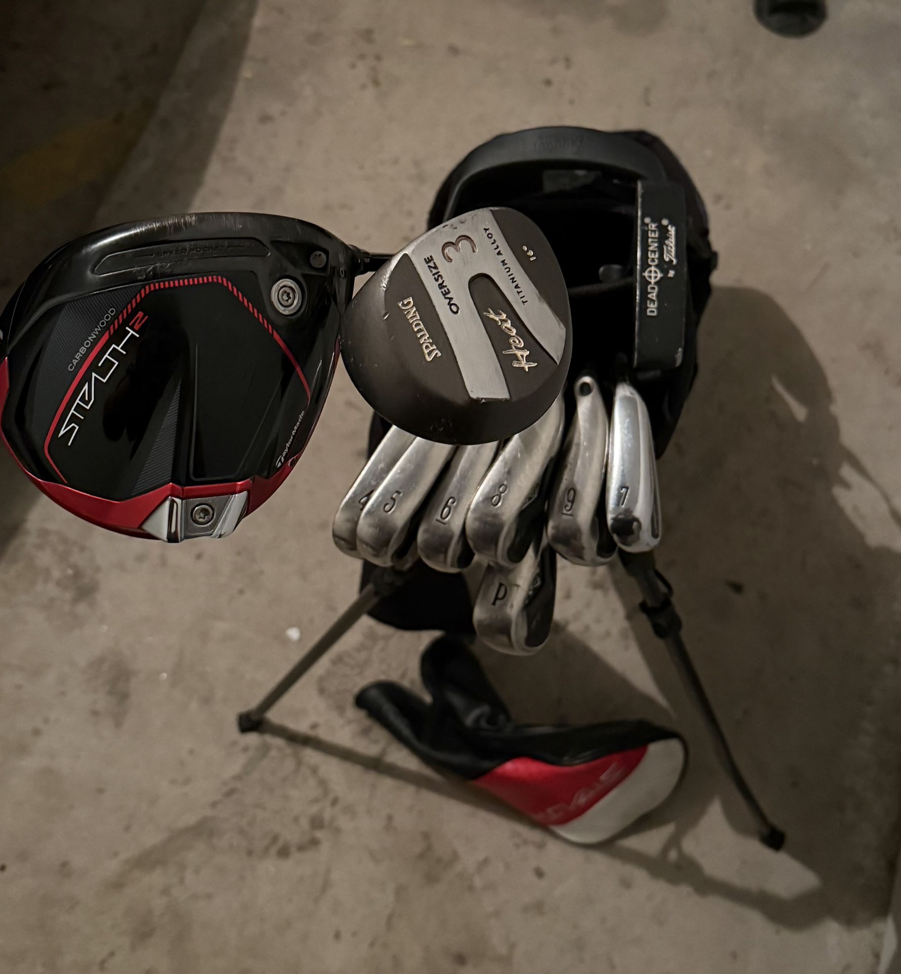 (Right handed) Perfect beginner/intermediate set slightly beat but yet everything works great. Located in Lewisville.