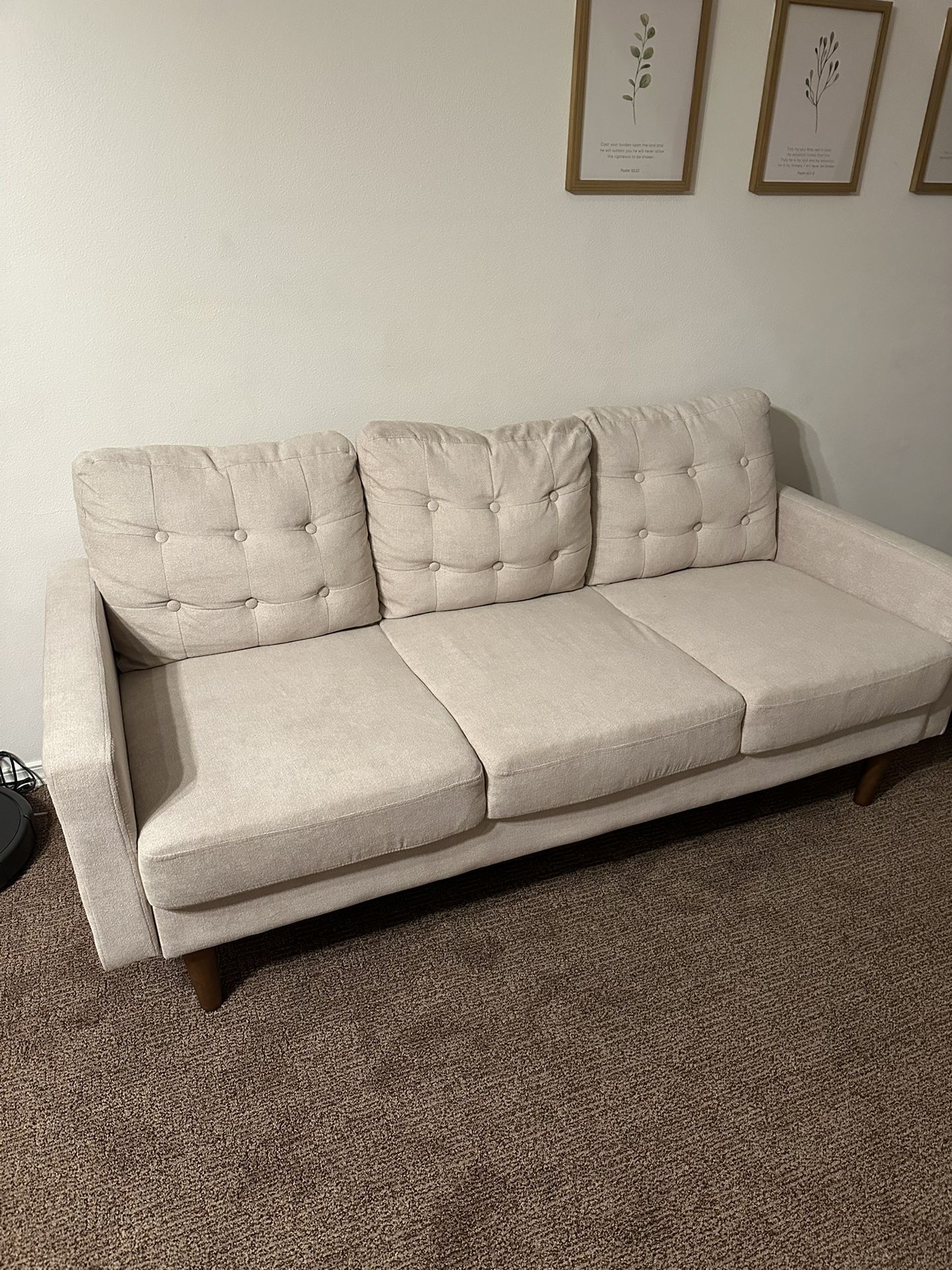 2 beige couches for sale. Together $400. Separate $225 each. No stains, wear, etc visible.