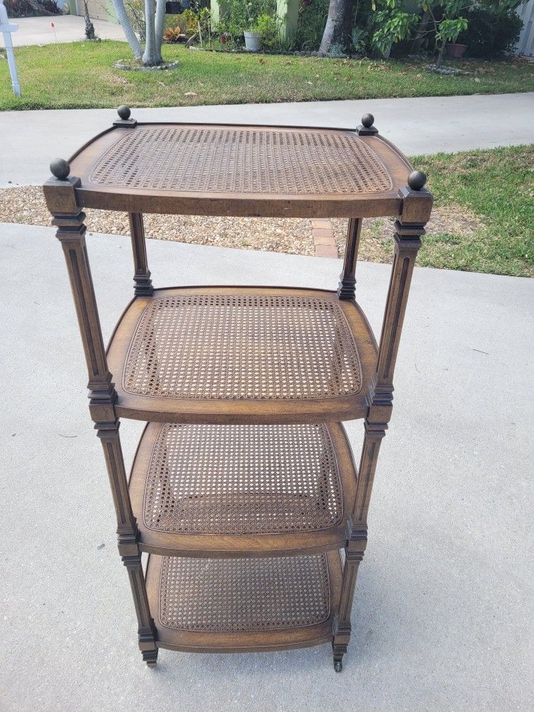 Antique Brandt 4 Tier Mahogony Table Cart with Wicker shelves