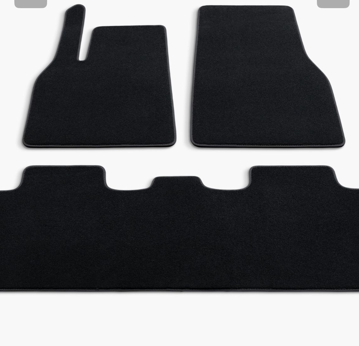 Model Y Carpet Interior Mats offer cushioned floor protection with a thick, durable pile and come treated for stain and soil resistance. Includes: • 1x first-row carpet mat [driver] • 1x first-row carpet mat [passenger] • 1x second-row carpet mat Note: Compatible with Model Y vehicles produced in 2025+.