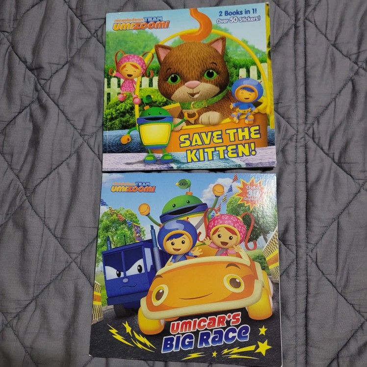 *Located at 32nd Ave and Glendale Ave * 2 books, 3 stories total Team UmiZoomi: Save the Kitten & Buster's Big Day-- no stickers and a hole on one cover Team UmiZoomi: Umicar's Big Race-- book is in good condition and has all but one sticker included.