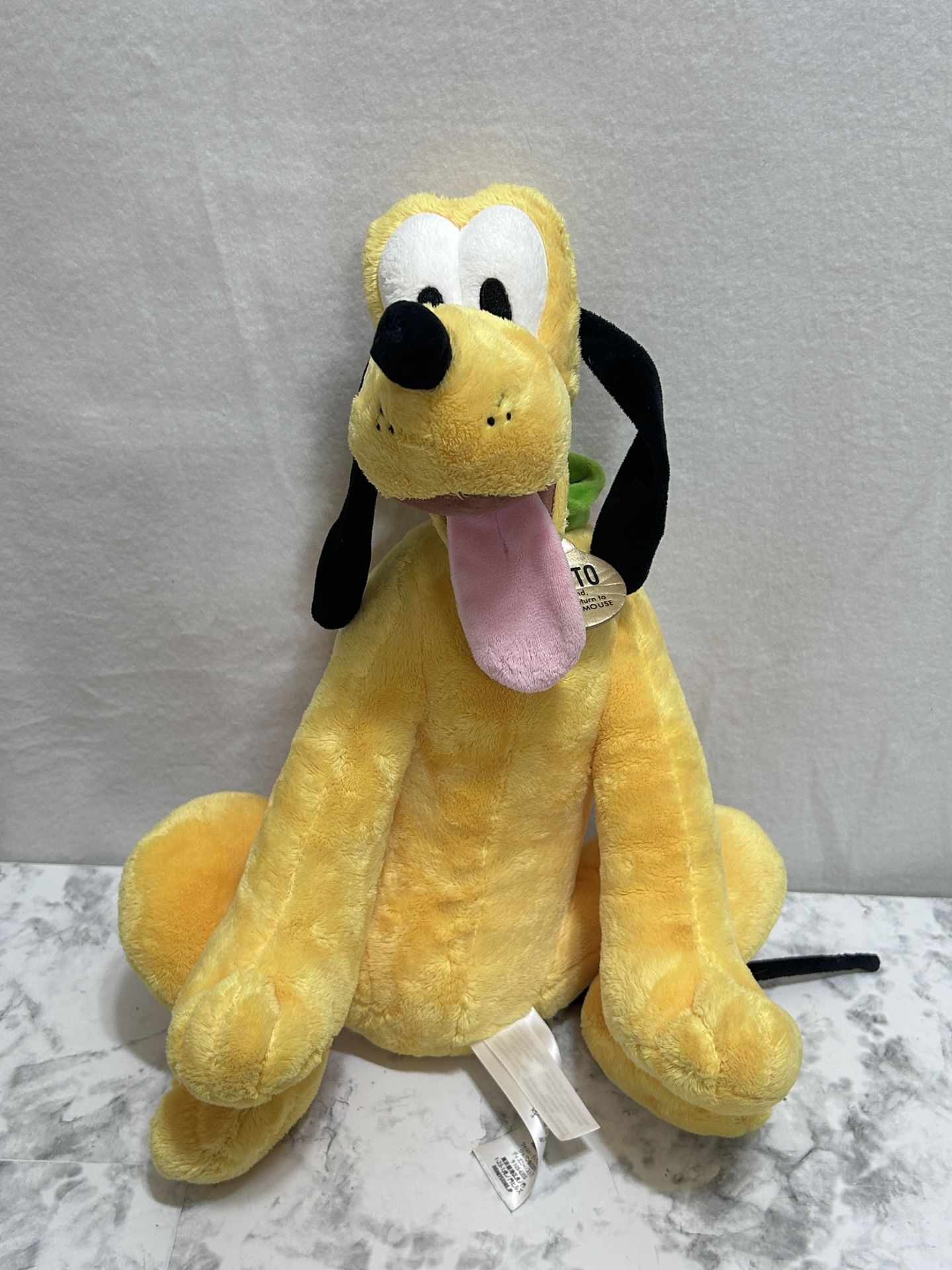 Walt Disney Store Pluto 16" Bean Bag Plush Doll Toy Yellow Green. - Pluto Tag, "If Found, please return to Mickey Mouse. -16" tall Gently used. Please see all photos. Clean, odor free. *Neck of Pluto is soft, flops.