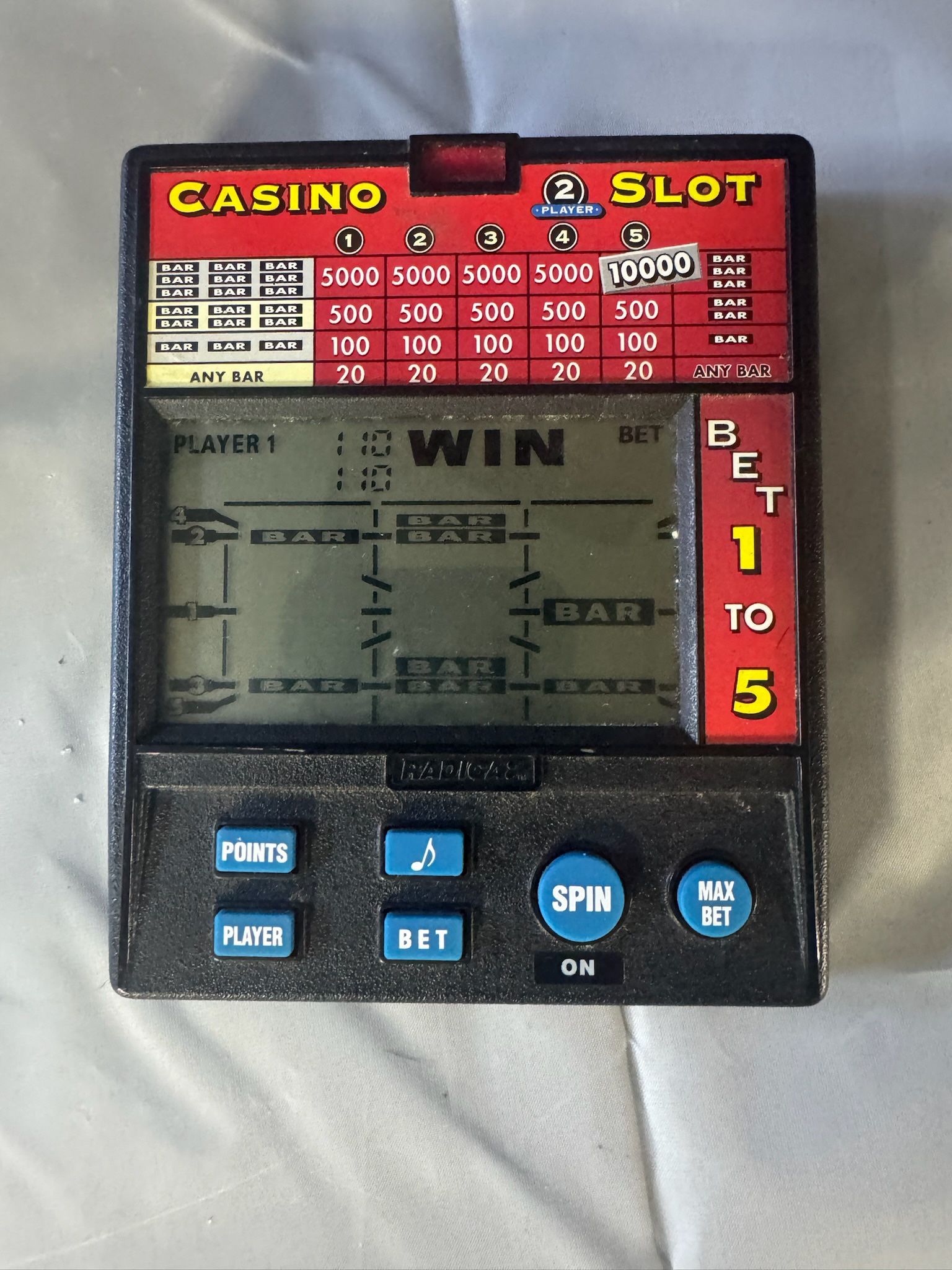 Brand new video slot machine game. Comes with batteries.