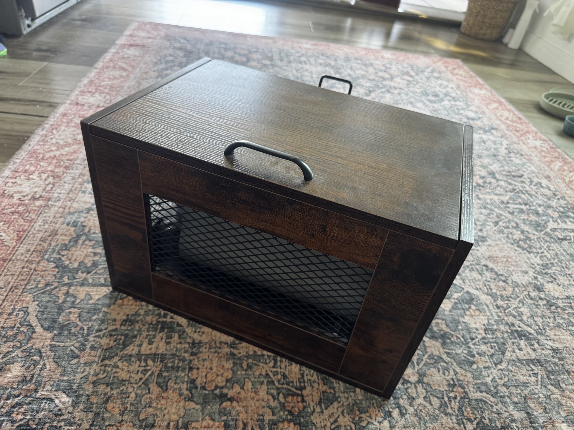 Selling because we are moving across state, very nice looking little wooden filing cabinet with files dividers inside.