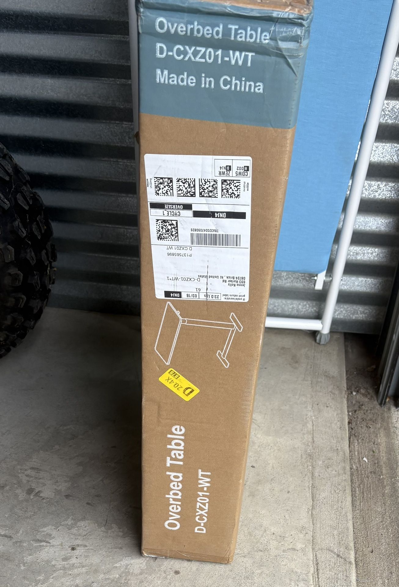 New in box, over bed table