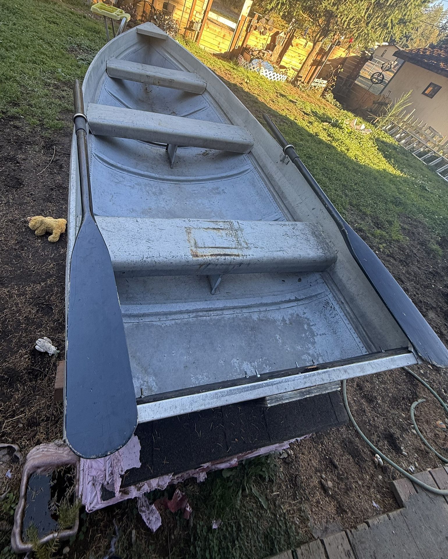 Looking to mainly trade but will sell for $(contact info removed)s sears 12 foot by 4foot wide aluminum boat in good floating condition just kinda ugly. Comes with a good running 1965 Johnson 6hp outboard including fuel tank, a set of 5’6 oars with locks and two adult life jackets one child life jacket and a floating cushion. mainly want to trade for a pit bike, dirt bike or quad. Willing to sell for $600 if you have offers or trades feel free to send them my way.