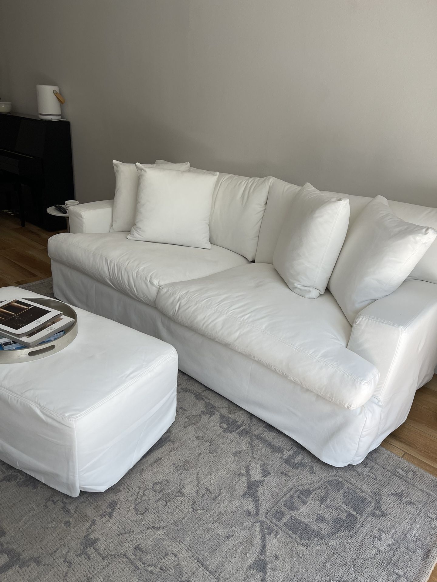 Sofa and ottoman slip cover white performance fabric, like new, paid 1900, asking 900