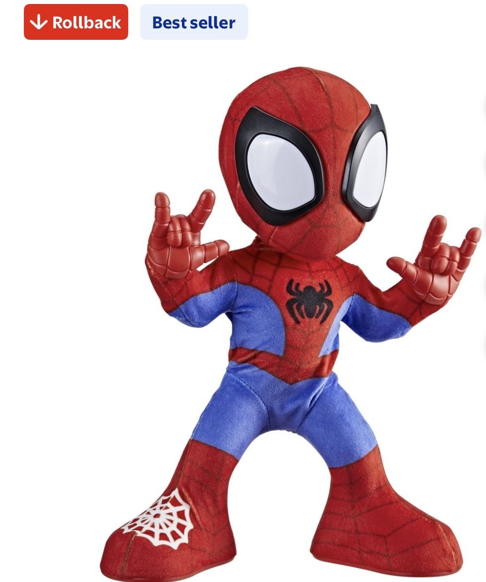 Marvel Spidey and His Amazing Friends Dance 'N Crawl Spidey Interactive Plush Toy Get ready for dancing, crawling, and webtastic sound effects with the Marvel Spidey and His Amazing Friends Dance 'N Crawl Spidey! Preschool boys and girls 3 and up can activate dance mode by pushing the web on Spidey's foot. Press the icon on Spidey's chest and hear 5 awesome sound effects, plus 2 instrumental songs for dancing along! Ready for pretend wall-crawling action? Watch Spidey crawl by tilting his head up, rotating his wrists, and placing him on his belly. Phew, what an adventure! Settle down for a story or a nap with Spidey. Plush Spidey toy is covered in a soft fabric that's perfect for snuggling when playtime is done. This Spidey and His Amazing Friends toy makes a great Marvel gift for boys and girls and helps to encourage movement while imagining awesome adventures with Spidey.