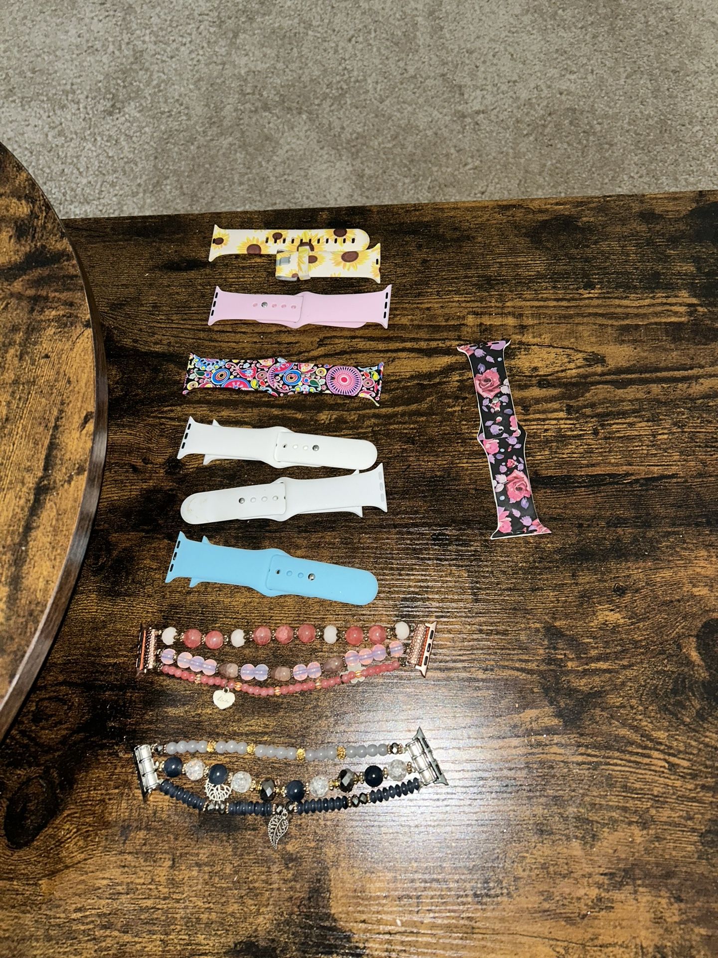 Variety of apple watch bands. All bands are 3840mm except for the black rose one (1st picture)- which is 42/44mm. Bands have never been worn. Price is $7/band or $45 for all 9 bands.