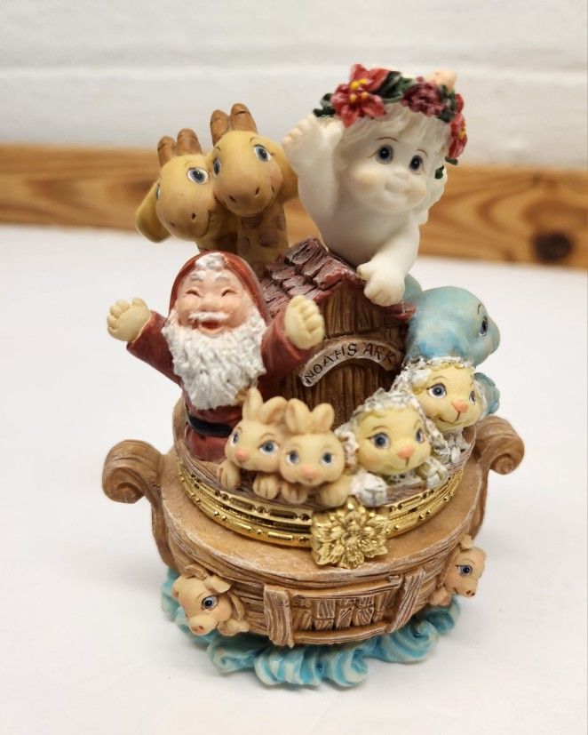 Vintage 1998 Dreamsicles Christmas Ark #10457. Porcelain hinged trinket box. Overall size 3"x3"x4". Excellent condition.