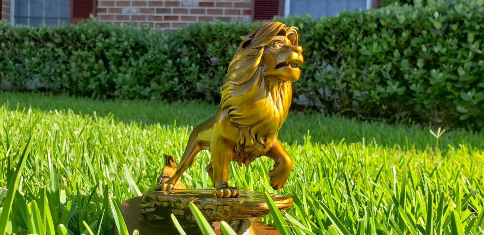 Dimensions: 8 1/2" tall x 8 1/2" long This award figurine is presented to the Disney Cast Member when they reach 20 years of service (employment) on or around the anniversary of their date of hire and features Simba from the Disney classic movie The Lion King......