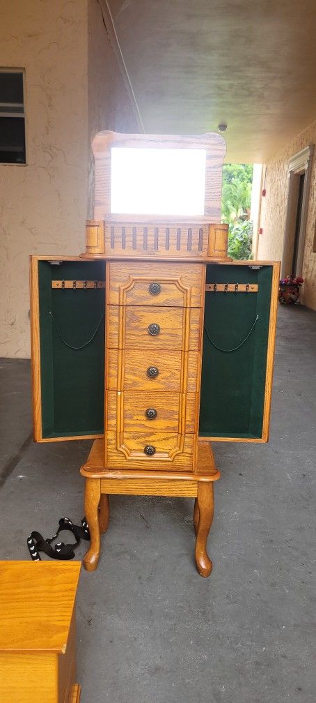 Vintage 5 Drawer / 3 Cabinet Tall Standing Jewelry Box Armoire Chrst 40x16x10 3/4