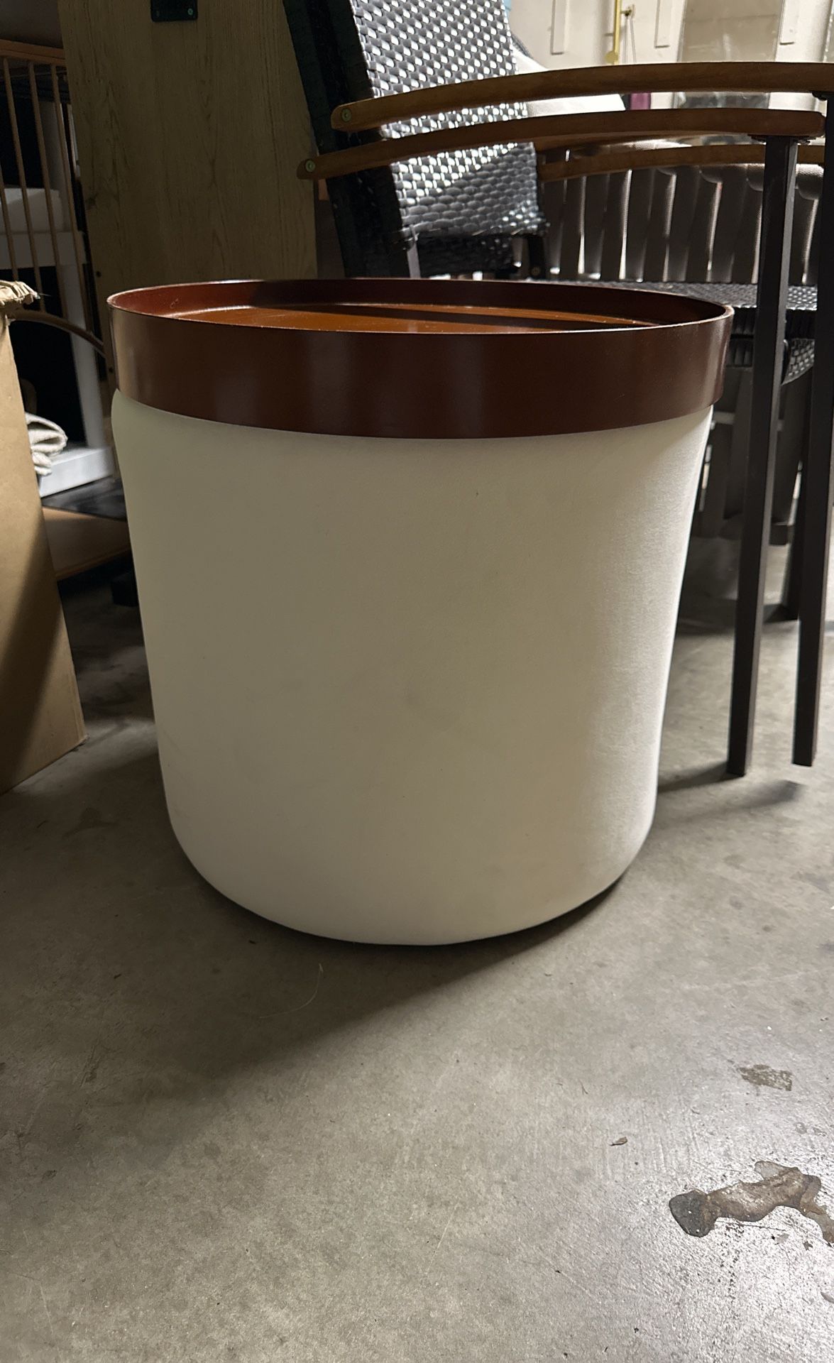 Can be used as side table or even coffee table. 19.5 diameter Small scuffs and stains due to moving it around but overall in good condition